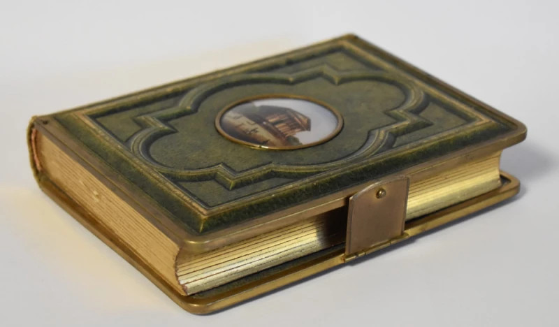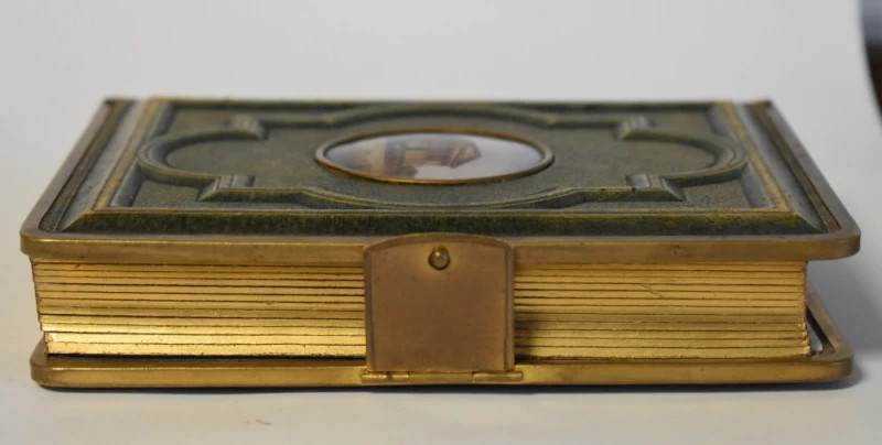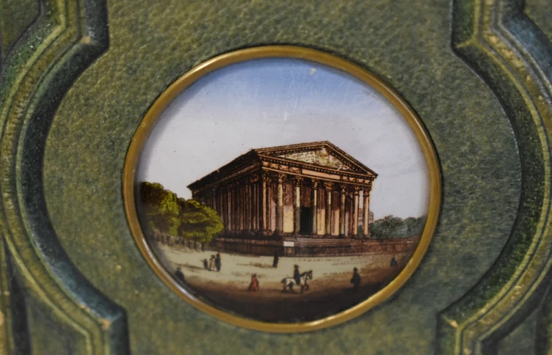 Coperta este realizată într-un stil sobru și elegant, specific obiectelor de lux ale epocii, având un decor în relief și o miniatură centrală reprezentând Biserica Madeleine din Paris, pictată sau imprimată pe suport emailat. Rama din alamă și sistemul de închidere metalic reflectă grija pentru detalii și calitatea manufacturii.