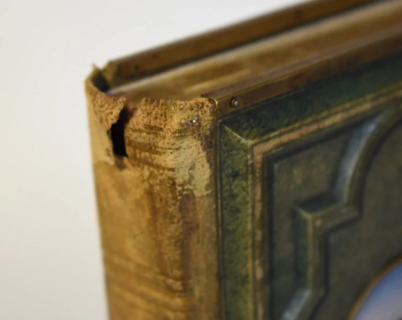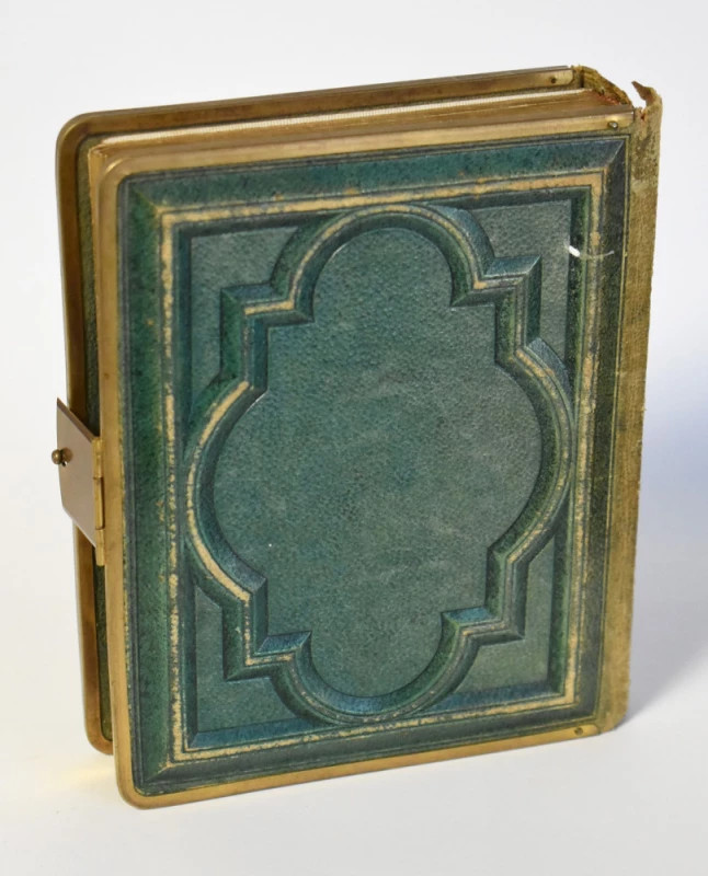 Album de fotografii de epocă, datând din a doua jumătate a secolului al XIX-lea, conceput pentru păstrarea fotografiilor tip CDV (carte de visite).