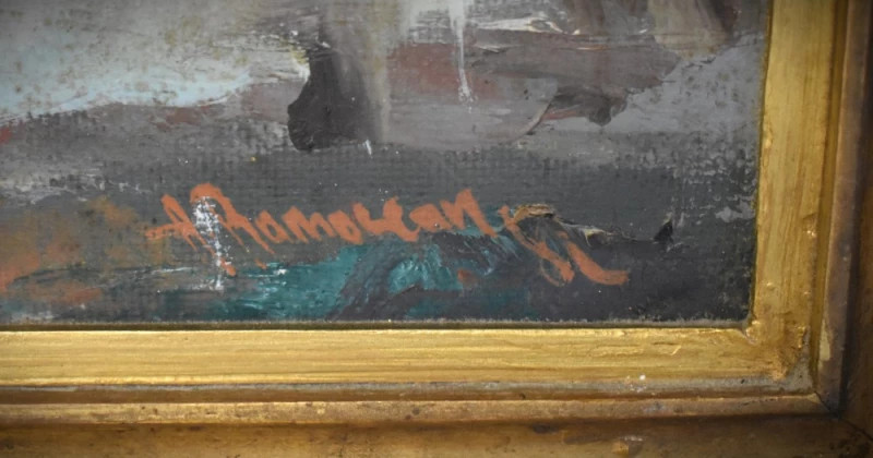 Lucrare în ulei pe carton realizată de pictorul orădean Andrei Romocean, membru al Uniunii Artiștilor Plastici din România. Peisaj din deltă surprinde atmosfera specifică zonelor umede: apă liniștită, vegetație bogată și lumina caldă care modelează discret compoziția.