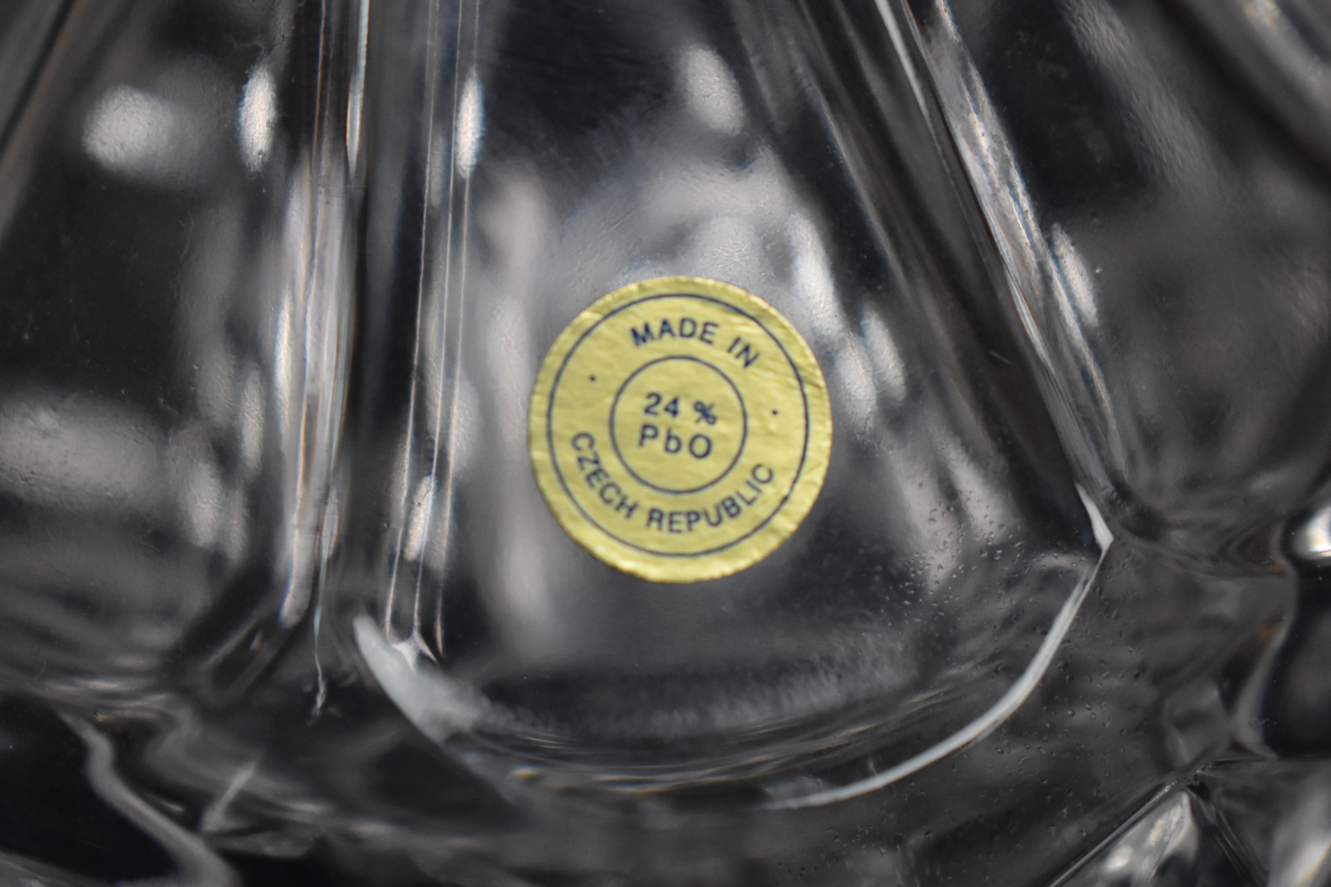 Elegant set pentru lichior, compus din carafă cu dop din cristal și șase pahare asortate, realizat din cristal boem autentic, provenit din renumitele ateliere din Bohemia, Cehia. Piesa se distinge prin tăietura clasică fațetată, care creează reflexii luminoase spectaculoase și evidențiază claritatea cristalului.