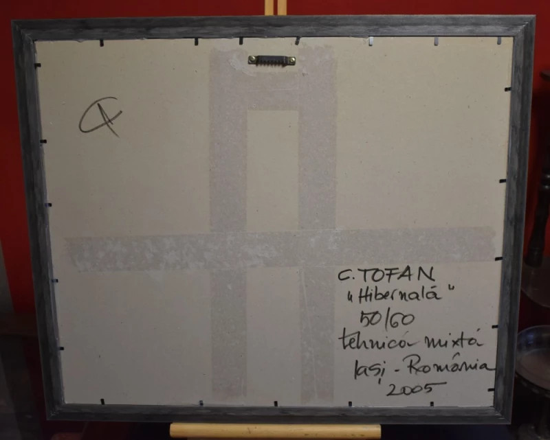Lucrare în tehnică mixtă realizată în 2005 de artistul contemporan Constantin Tofan, cunoscut pentru peisajele sale expresive și armoniile cromatice subtil construite. Hibernala surprinde atmosfera liniștită a iernii prin straturi delicate de culoare, accente reci și texturi rafinate care evocă lumina difuză și calmul specific anotimpului.