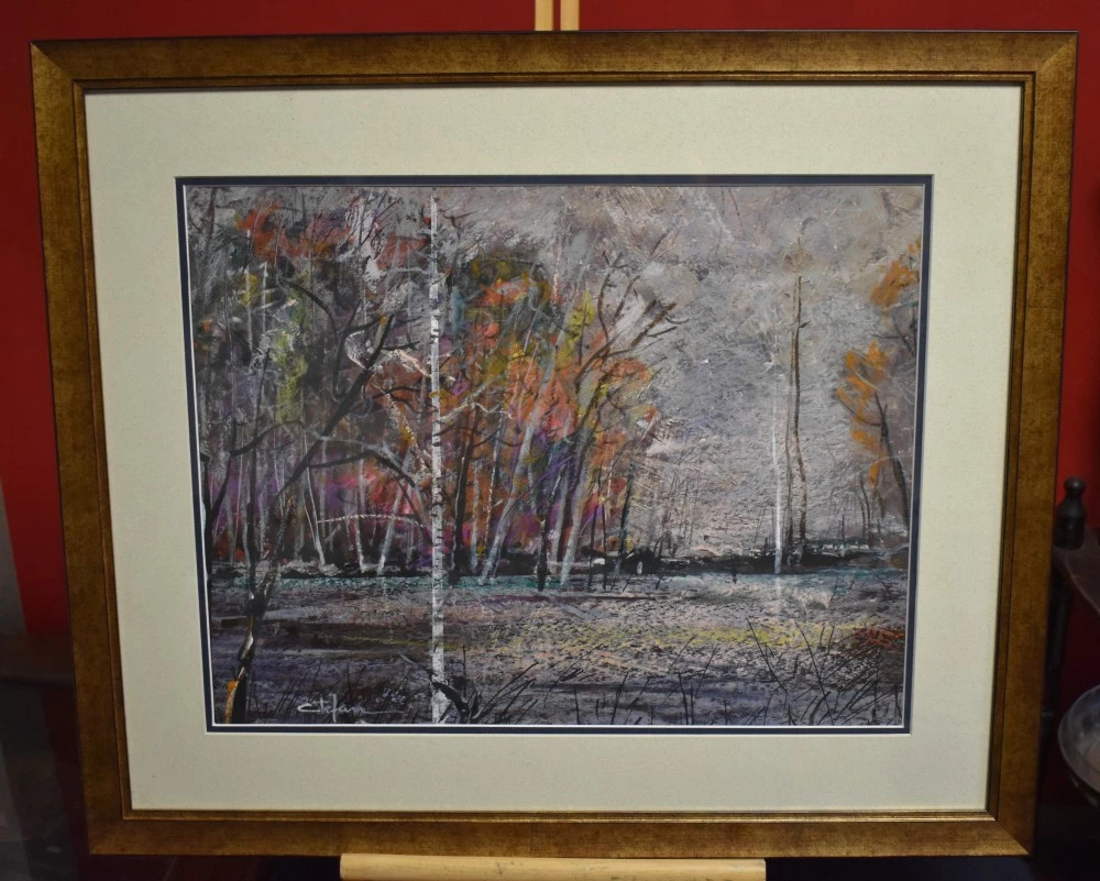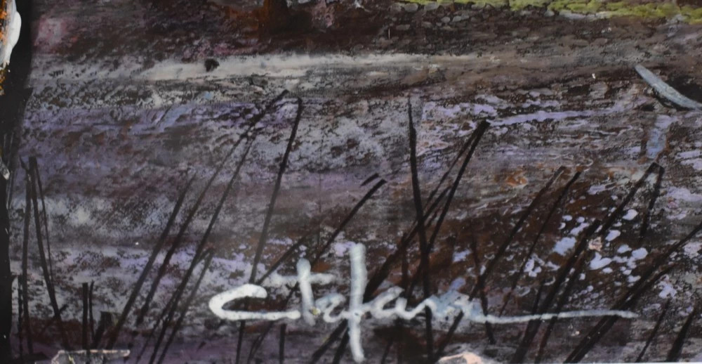 Tonurile reci și luminoase se împletesc cu accente mai intense, sugerând vibrația apei și liniștea unui peisaj natural privit în cheie modernă. Lucrarea reflectă maturitatea stilistică a artistului și sensibilitatea lui pentru detaliul poetic.