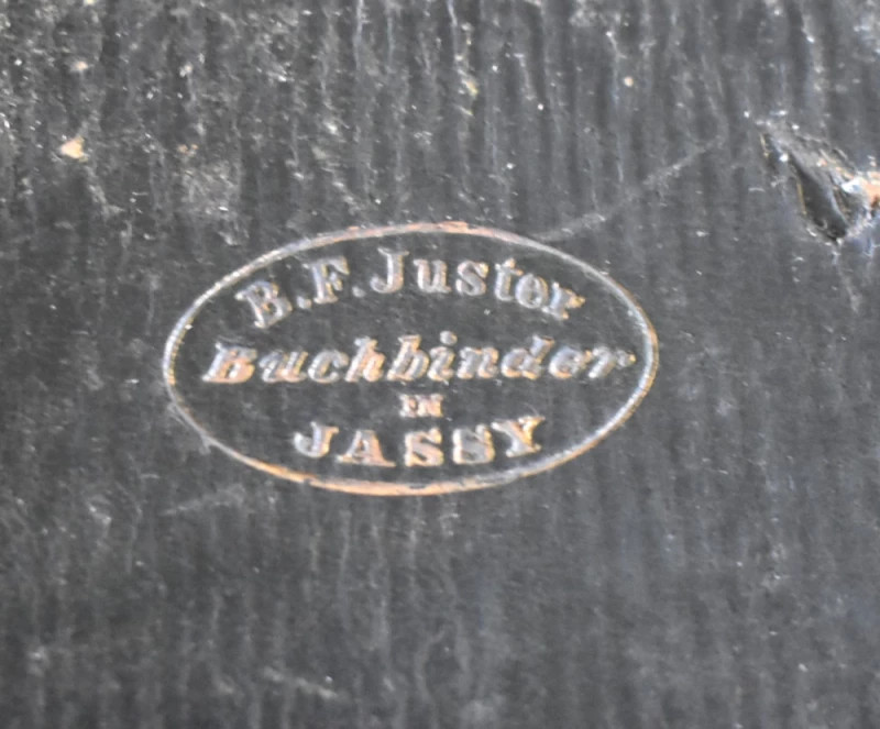 inscripția originală: Buchbinder B.F. Juster – Jassy, 1857