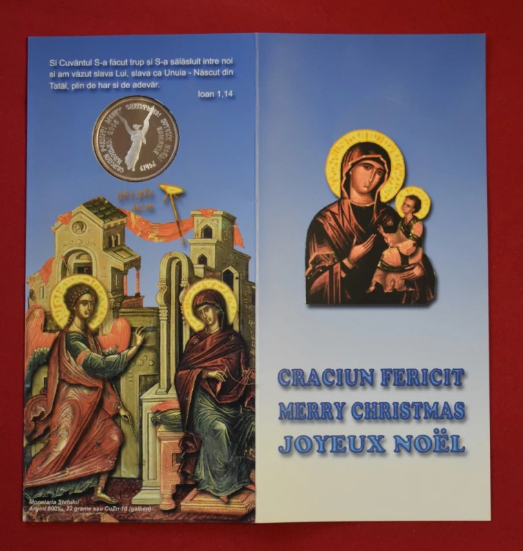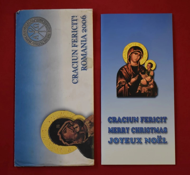 Această felicitare de Crăciun comemorativă, emisă în anul 2006 de Monetăria Statului – România, include o medalie din argint masiv, cu tematică religioasă și mesaj profund creștin, fiind un obiect de colecție cu valoare simbolică și numismatică.