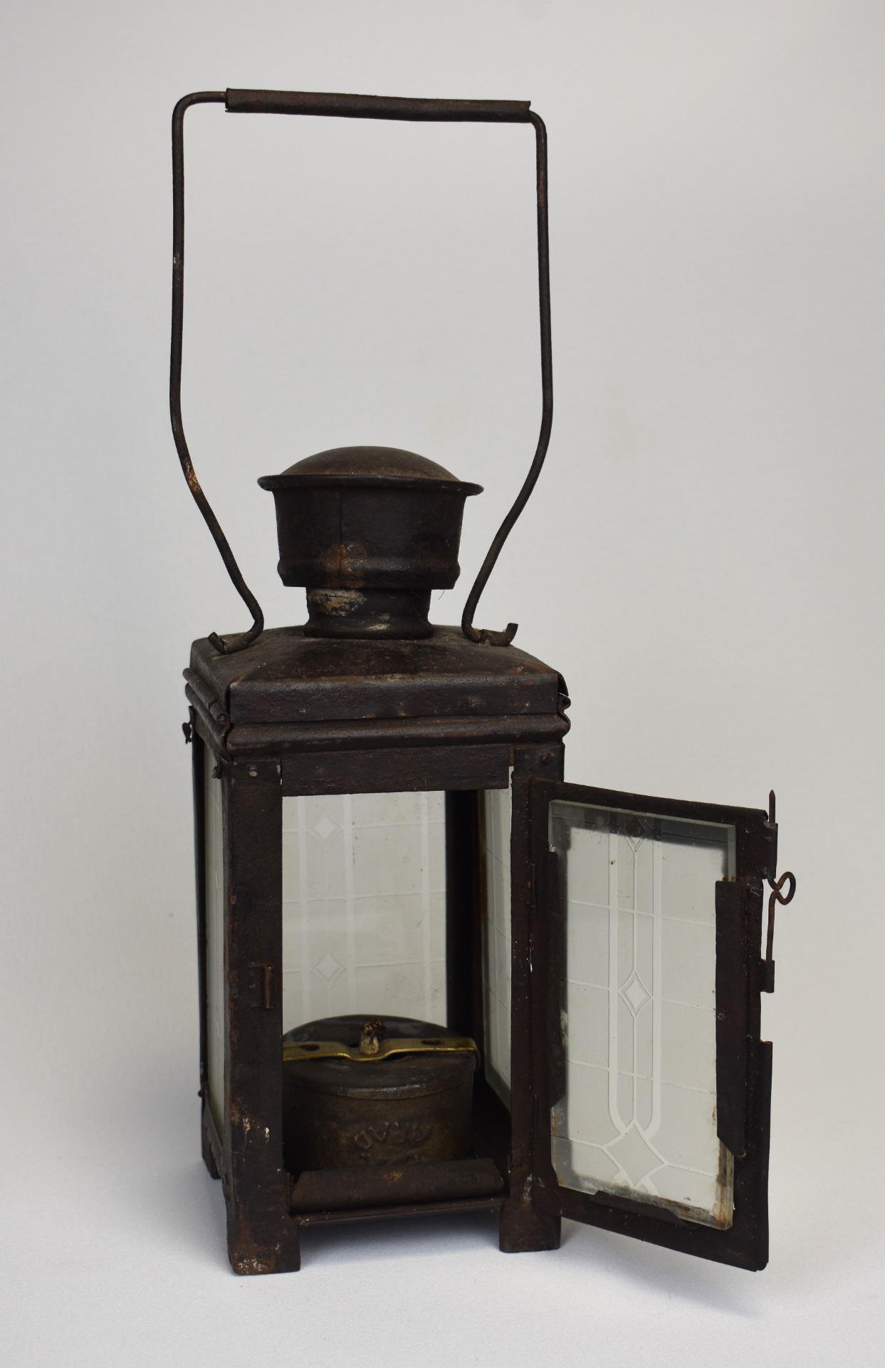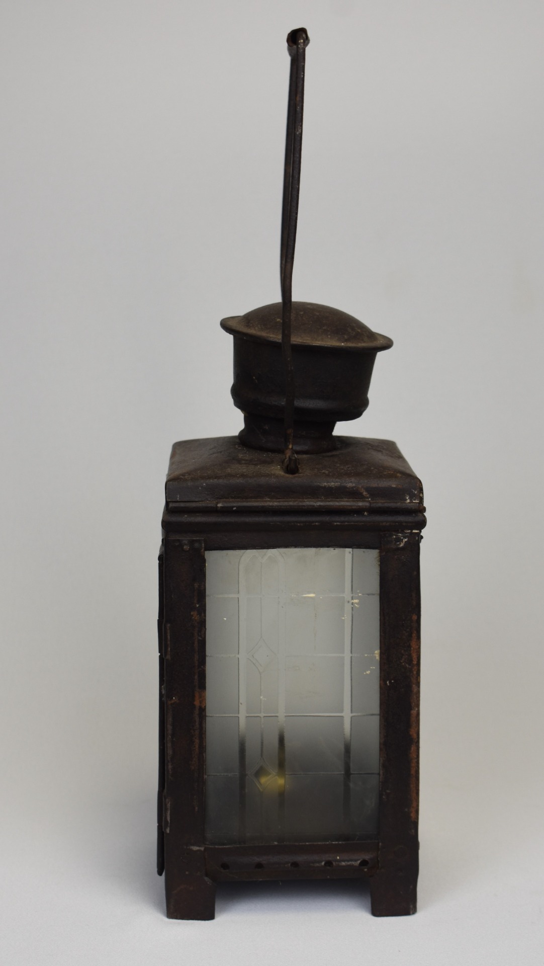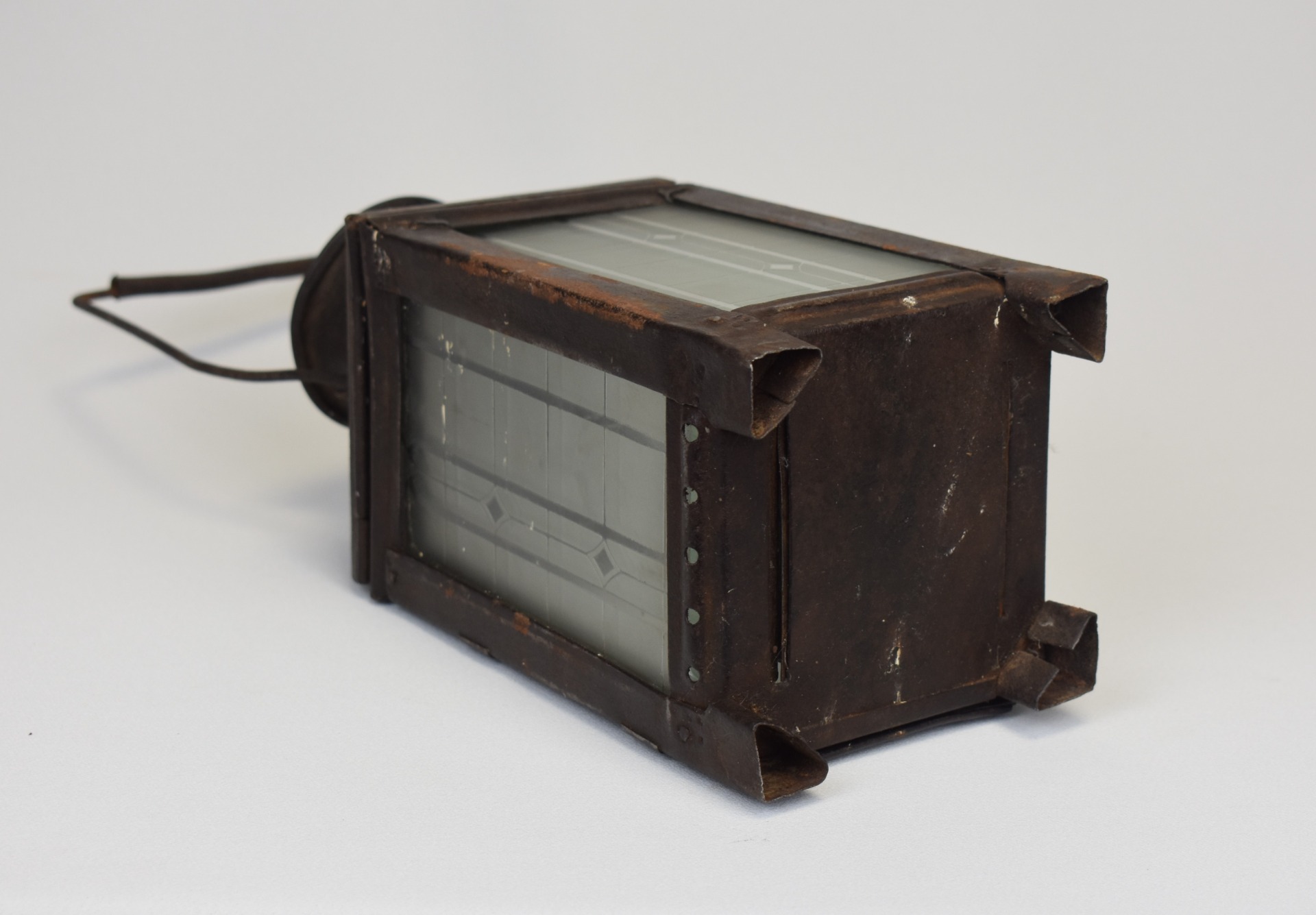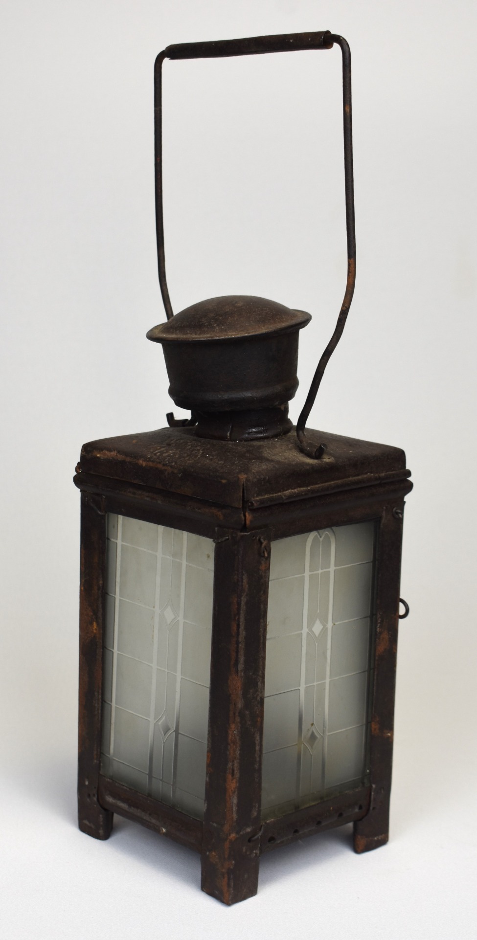 Construit din metal cu panouri din sticlă, felinarul impresionează prin liniile sale sobre și robuste, gândite pentru uz practic pe peroane, în depouri sau în activitatea personalului feroviar. Patina accentuată, urmele de uzură și proporțiile bine echilibrate conferă obiectului o forță vizuală aparte, specifică instrumentelor tehnice ale epocii.