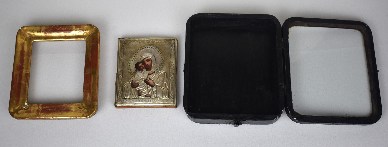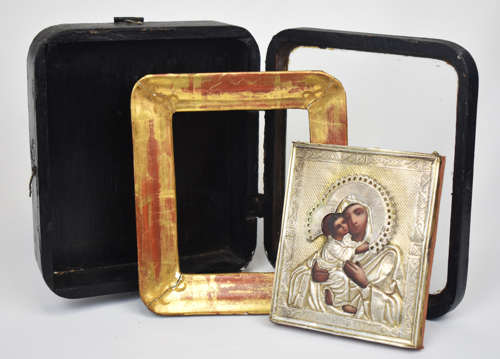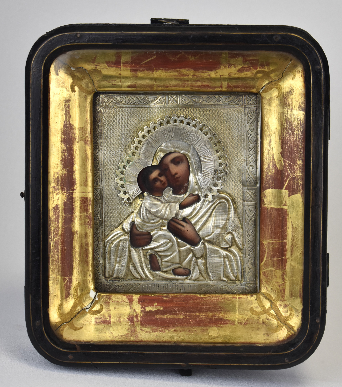 Această icoană rusească veche reprezentând-o pe Maica Domnului din Vladimir este o piesă autentică de artă religioasă realizată la Moscova în anul 1897, epocă în care arta metalelor prețioase și obiectele de cult atingeau un nivel remarcabil de rafinament în Imperiul Rus.