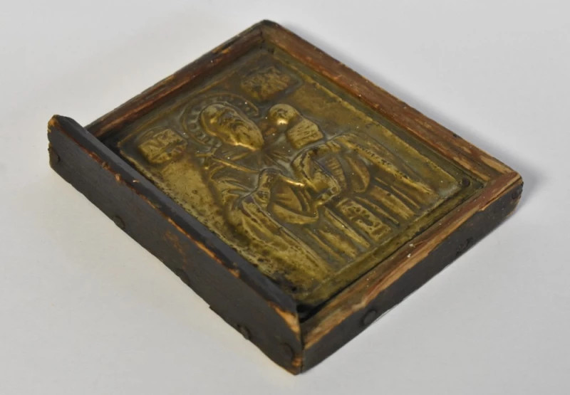 Icoană veche de proveniență grecească, datată la sfârșitul secolului XIX, realizată în alamă turnată și gravată, montată într-o ramă de lemn. Piesa îl reprezintă pe Sfântul Stelian, cunoscut în tradiția ortodoxă ca ocrotitorul copiilor, adesea invocat pentru sănătatea celor mici și pentru binecuvântarea familiilor.