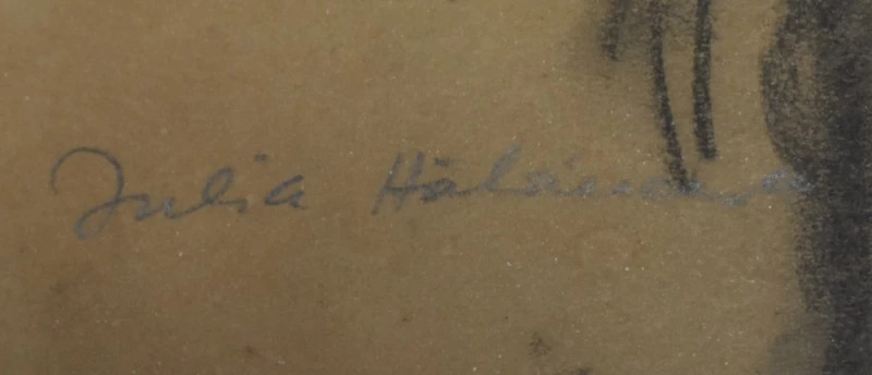 O lucrare grafică rară, sensibilă și profund expresivă, semnată de Iulia Hălăucescu, una dintre cele mai apreciate artiste române ale secolului XX, supranumită "Doamna Acuarelei Românești".