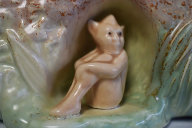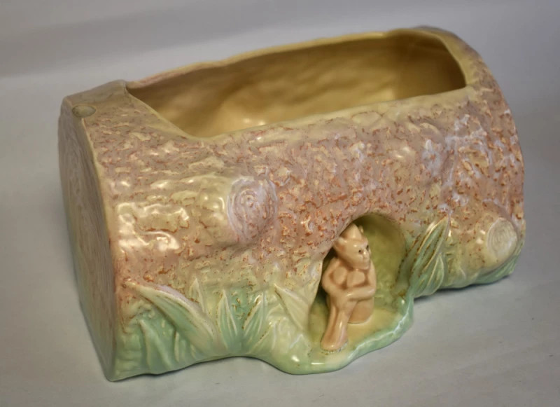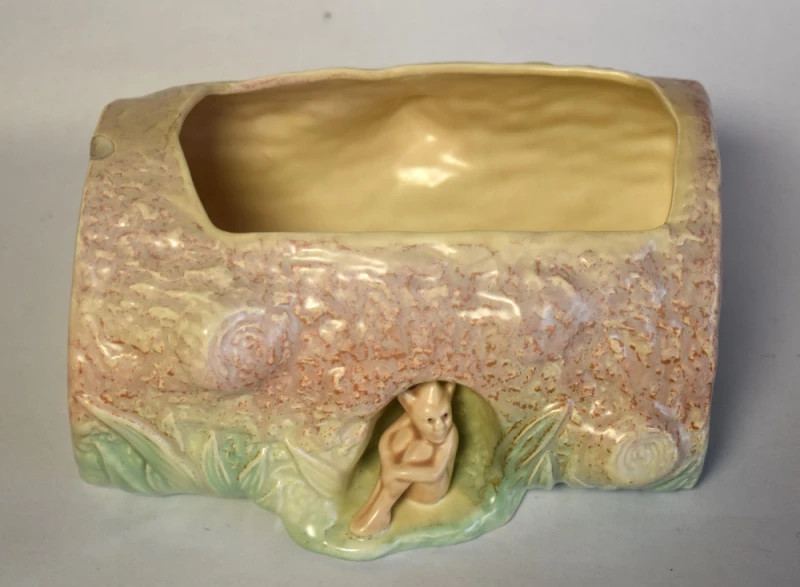 Cu farmecul discret al fanteziei și cu delicatețea ceramicii englezești, această jardinieră Sylvac pare desprinsă dintr-o poveste spusă la lumina lampii. Modelată sub forma unei buturugi, cu smalțuri bogate în nuanțe pământii și verzi de pădure, piesa adăpostește un mic elf sculptat, protector tăcut al florilor și al timpului trecut.