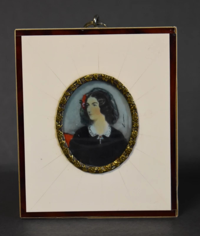 Această miniatură pictată de secol XIX, reprezentând-o pe Lola Montez – faimoasă dansatoare, actriță și figură scandaloasă a Europei romantice – este o piesă rară de artă portretistică Biedermeier, realizată în jumătatea secolului al XIX-lea.