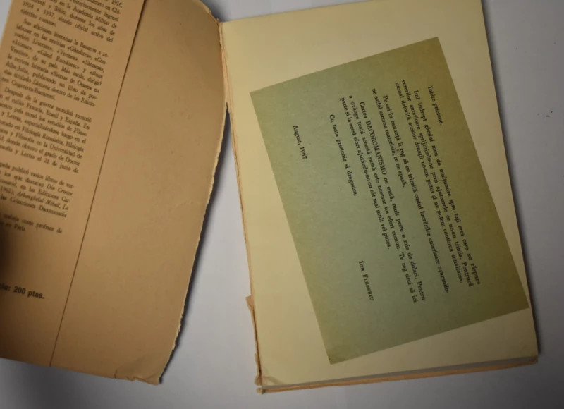 Volumul "Dacoromanismo", semnat de Ion Tolescu și publicat la Madrid în anul 1967, este o lucrare de exegeză istorică și identitară, rar întâlnită astăzi în circuitul comercial. Subtitlul – "Destino nacional ecuménico de un pueblo" – trasează încă de la început direcția profund reflexivă a cărții: aceea a destinului spiritual, istoric și cultural al poporului român, privit în context european și universal.