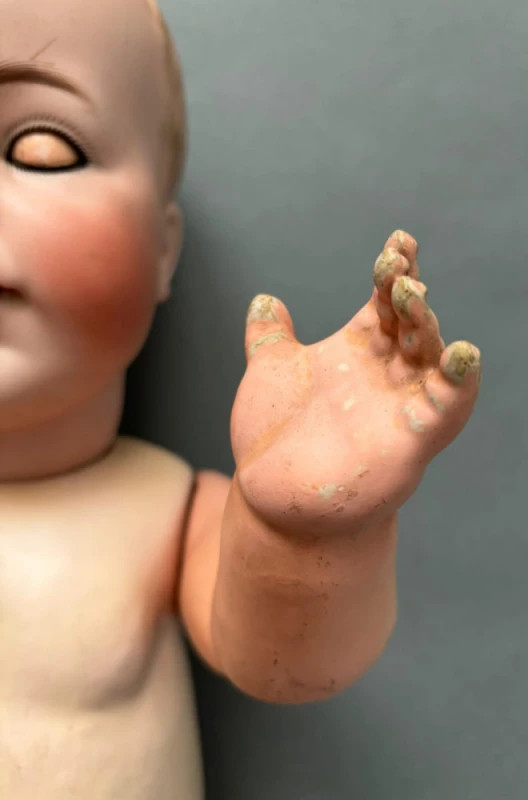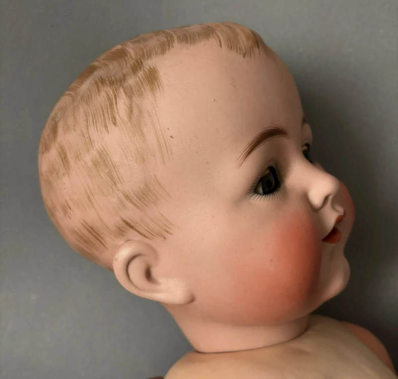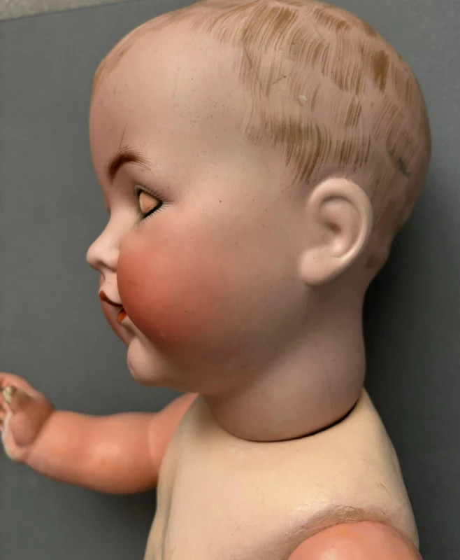 Piesa reflectă calitatea superioară a manufacturilor Simon & Halbig și K&R, cunoscute pentru realismul chipului, proporțiile armonioase și execuția impecabilă.