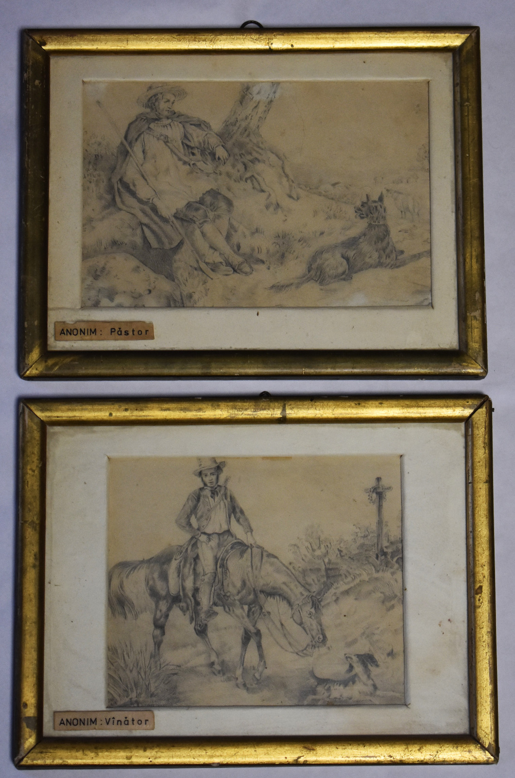 Set format din două desene vechi în creion, realizate de un autor necunoscut, probabil începutul secolului XX. Lucrările prezintă două teme tradiționale:
