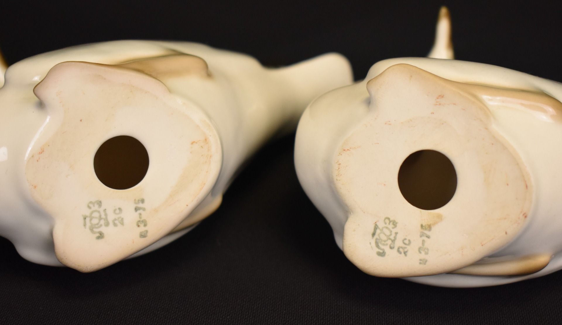Elegantă pereche de pescăruși din porțelan, realizată în cadrul prestigioasei Fabrici de Porțelan Lomonosov (Rusia / URSS), recunoscută internațional pentru calitatea artistică și tehnică a producției sale.
