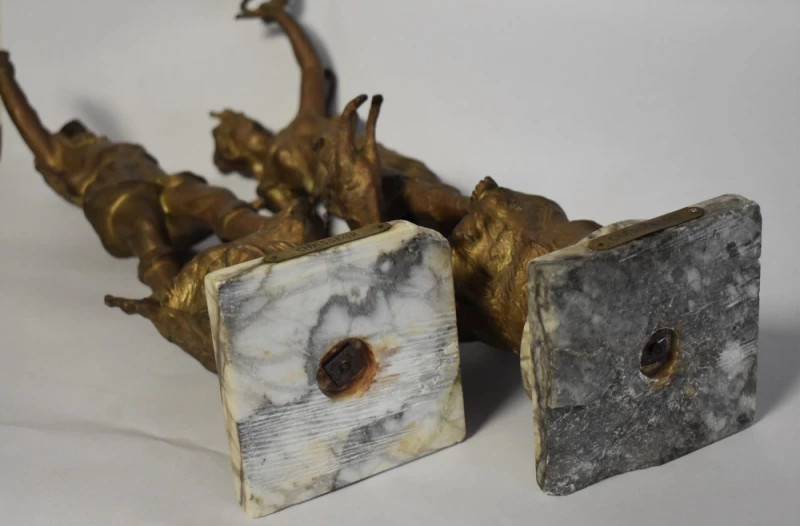 realizate în antimoniu patinat, specific pieselor decorative franțuzești de început de secol XX