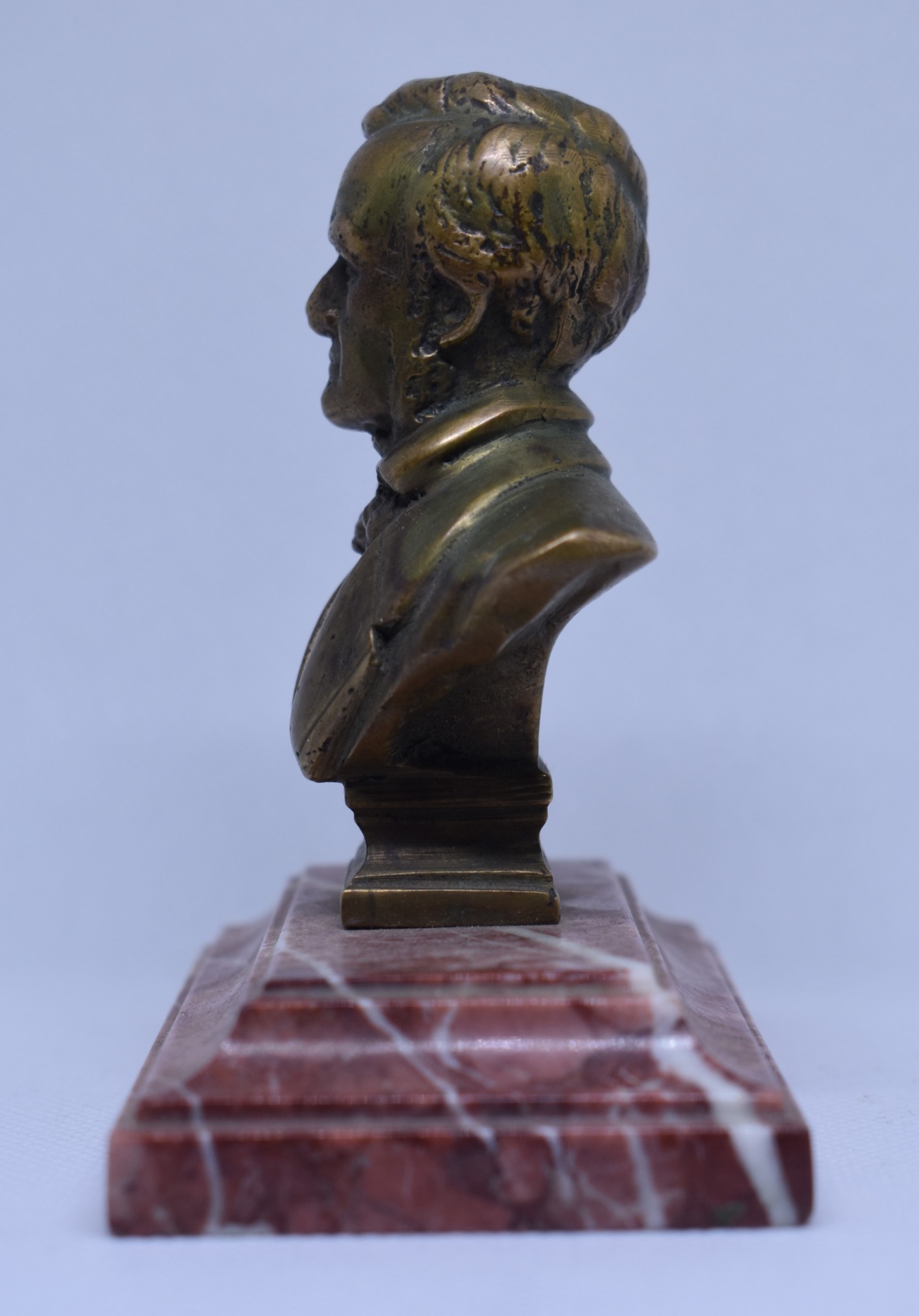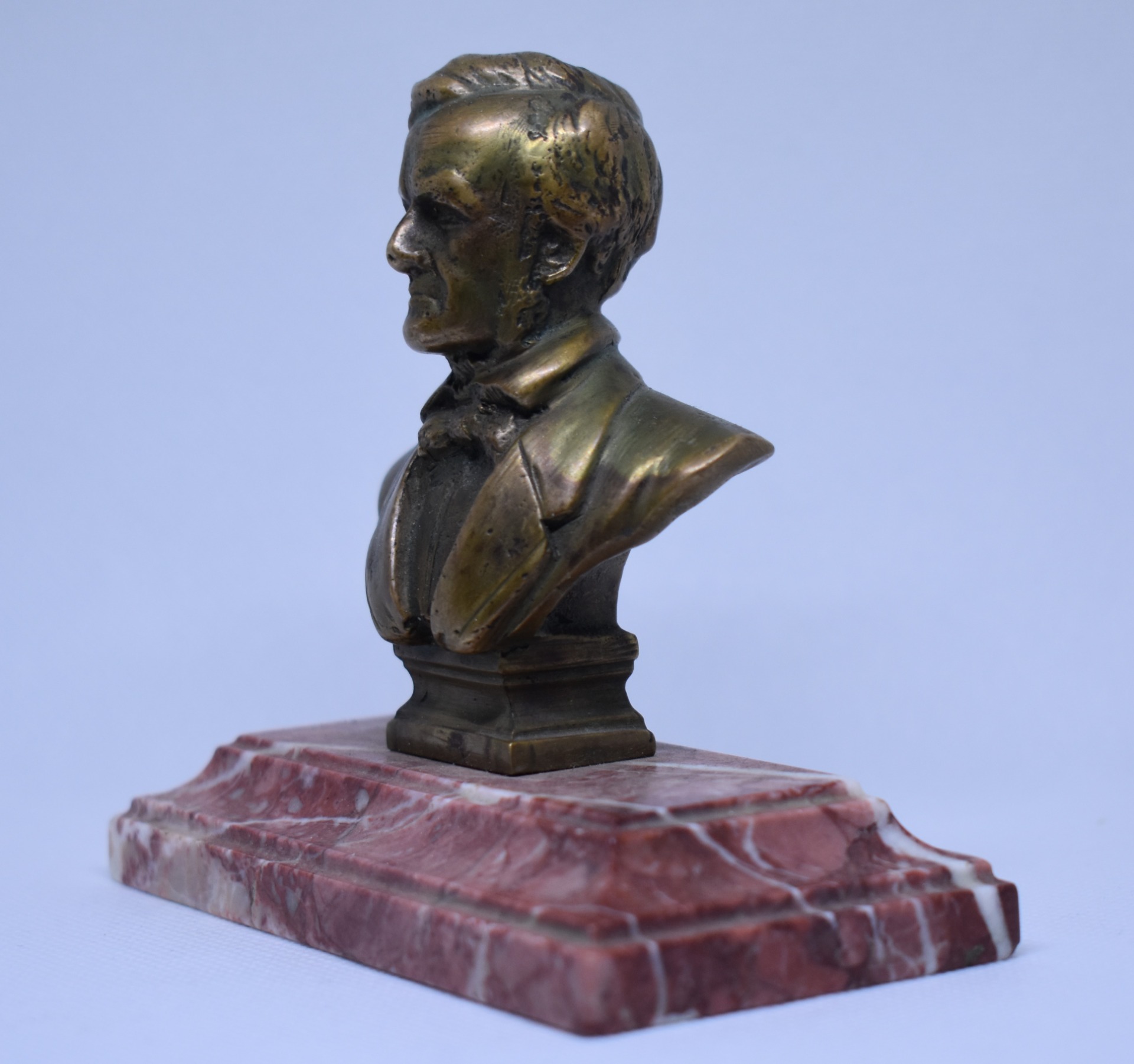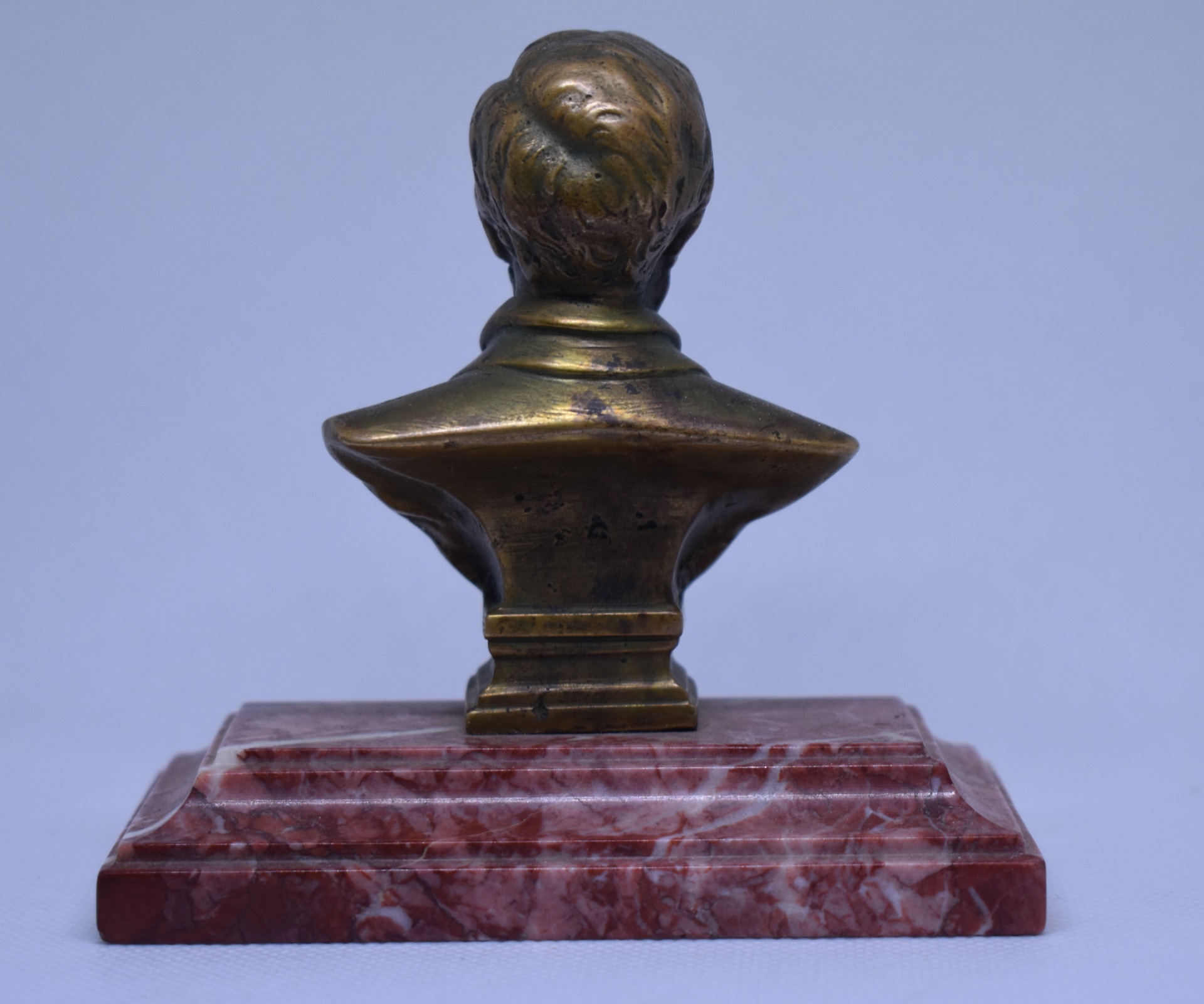 Statuetă de epocă reprezentându-l pe Richard Wagner, compozitor german emblematic al romantismului muzical. Bustul este realizat din bronz patinat, cu o modelare expresivă și sobră, surprinzând trăsăturile ferme și privirea concentrată ale compozitorului. Detaliile vestimentației – fracul și papionul – sunt redate cu rigurozitate, subliniind caracterul oficial al portretului.