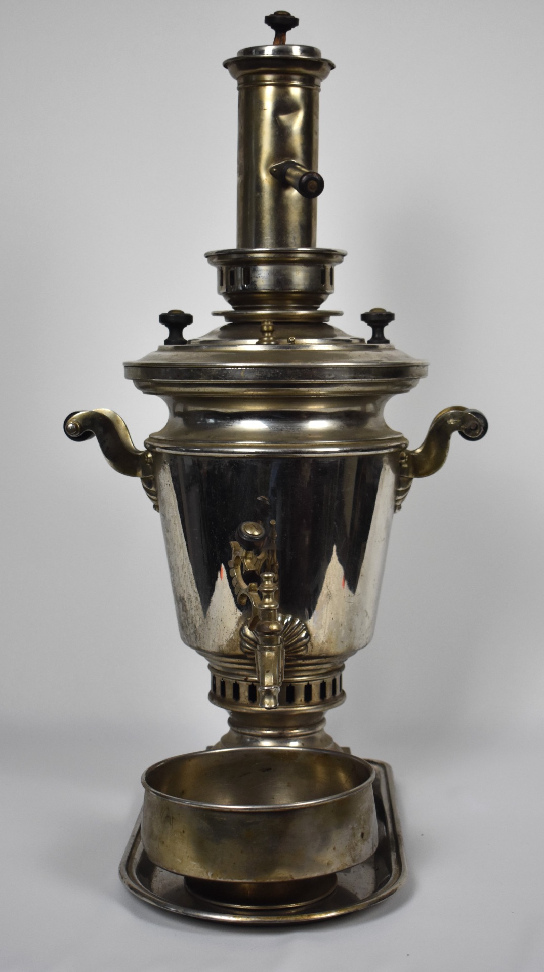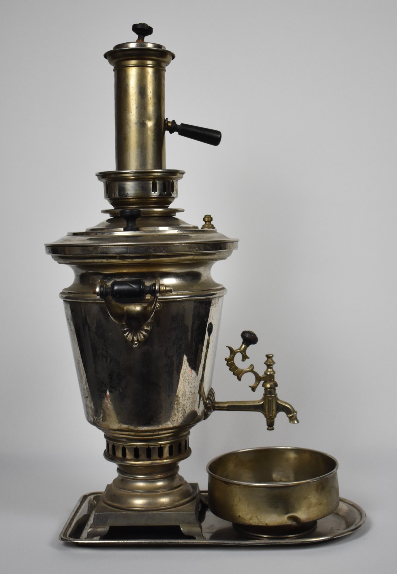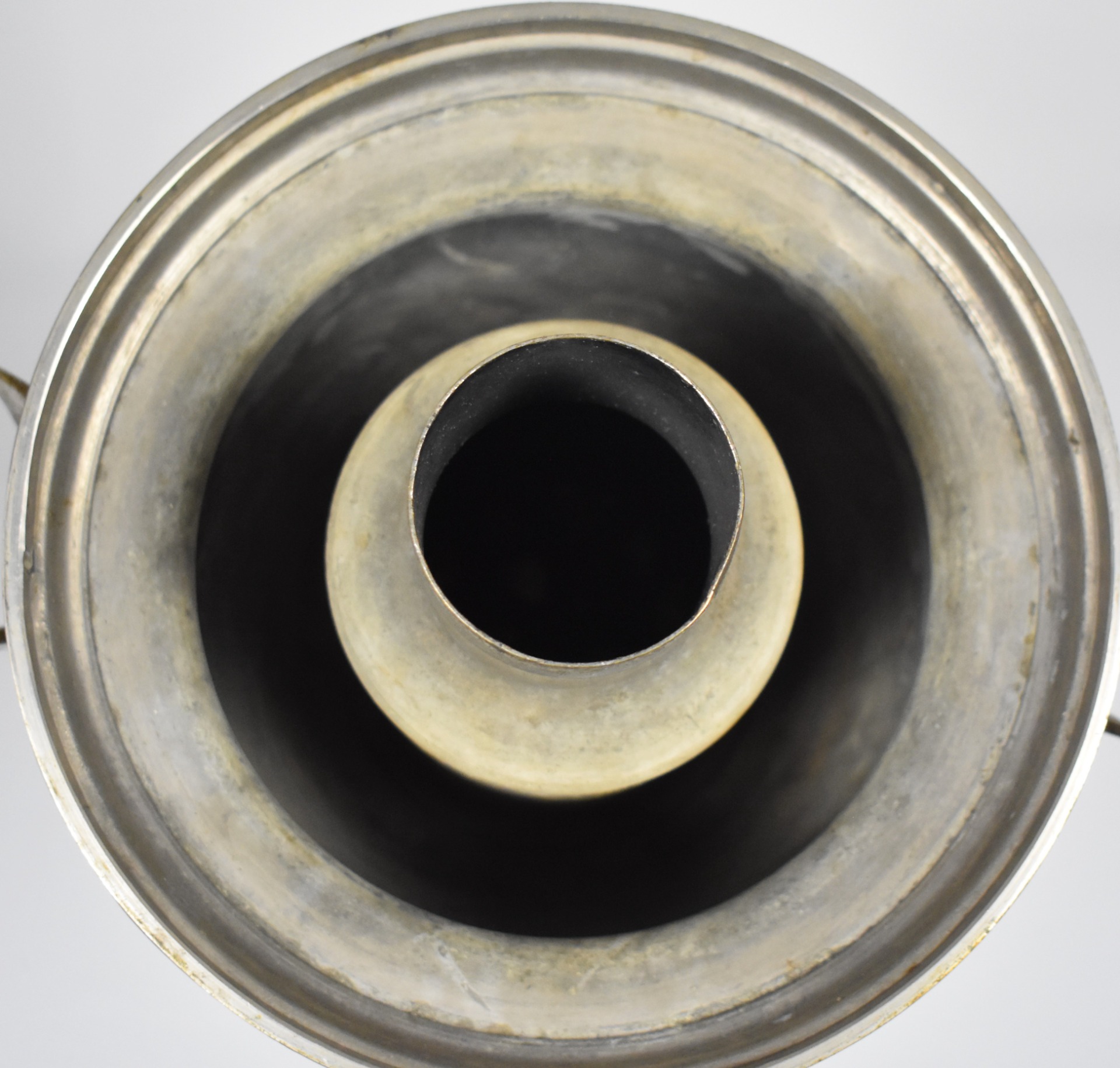 Samovar autentic de proveniență rusească, realizat în celebra manufactură A. Morozov din Tula, oraș faimos pentru producția de samovare încă din secolul XVIII. Model nichelat, lucrat în jurul anului 1900, cu formă clasică, corp bombat și elemente metalice solide, păstrând specificul samovarelor de epocă.