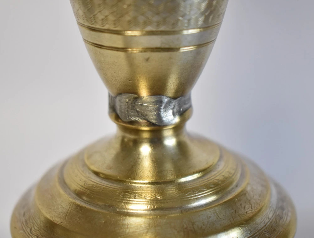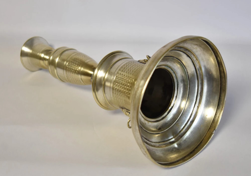 Stare de conservare conform foto (sfeșnicul a fost cositorit la mijloc).