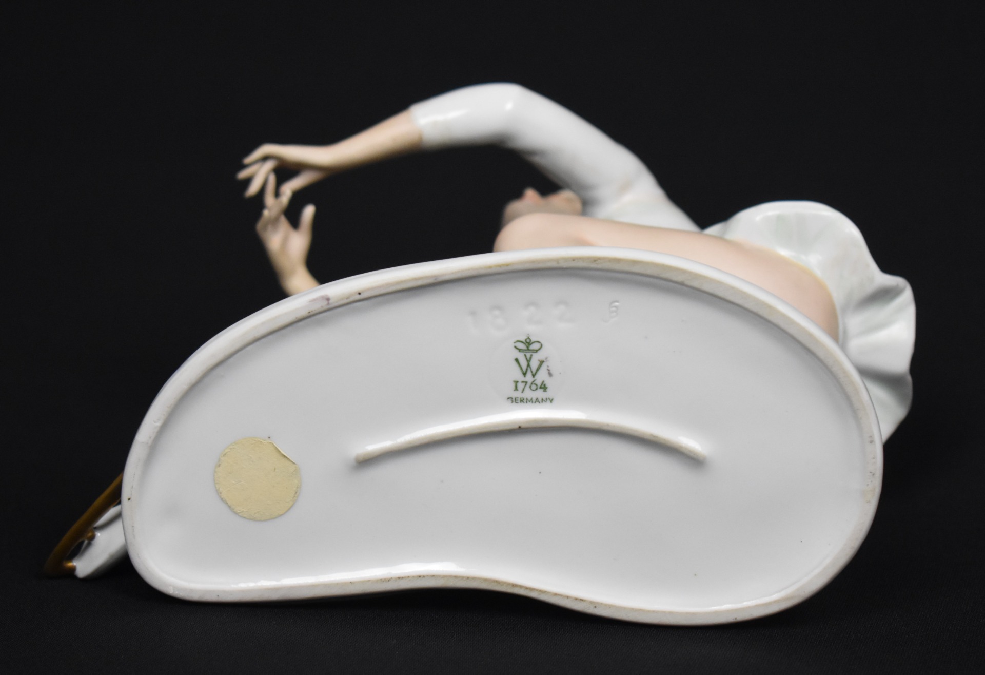 Postura fluidă, expresia delicată a chipului și finisajul lucios al porțelanului evidențiază estetica rafinată a sculpturii decorative germane din secolul XX. O piesă extrem de decorativă, apreciată de colecționari și iubitorii de porțelan artistic.