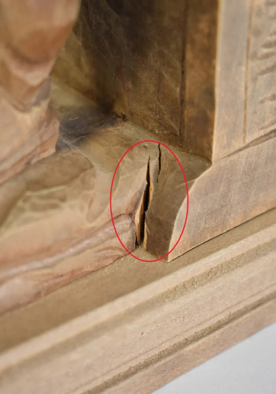 Selectată de La Belle Époque, această piesă este propusă ca obiect decorativ de colecție, cu puternică valoare estetică și simbolică, ideal pentru iubitorii de sculptură în lemn, artă istorică și obiecte cu personalitate.