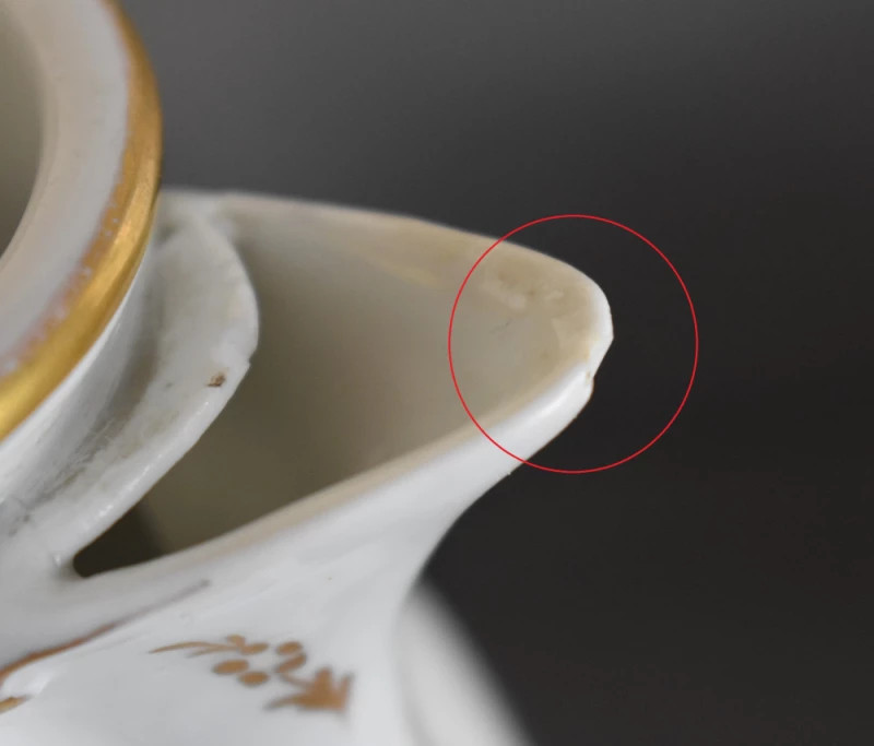 Defectele sunt semnalate în fotografii. Vasul nu are capac.