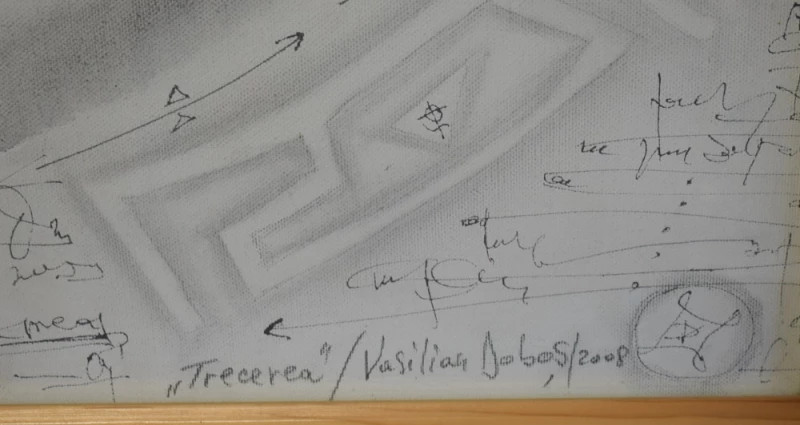 semnătura amplă a artistului și elemente simbolice personale