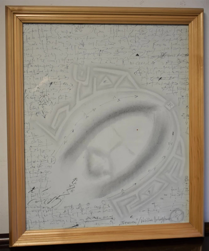 Lucrare grafică realizată de artistul ieșean Vasilian Doboș, membru UAP și cunoscut pentru limbajul său vizual rafinat, bazat pe linie, ritm și simbol. „Trecerea” (2008) este o compoziție complexă, construită pe structuri grafice suprapuse, semne, repere și trasee indicate de artist, care trimit la ideea de transformare, evoluție și migrare între planuri.